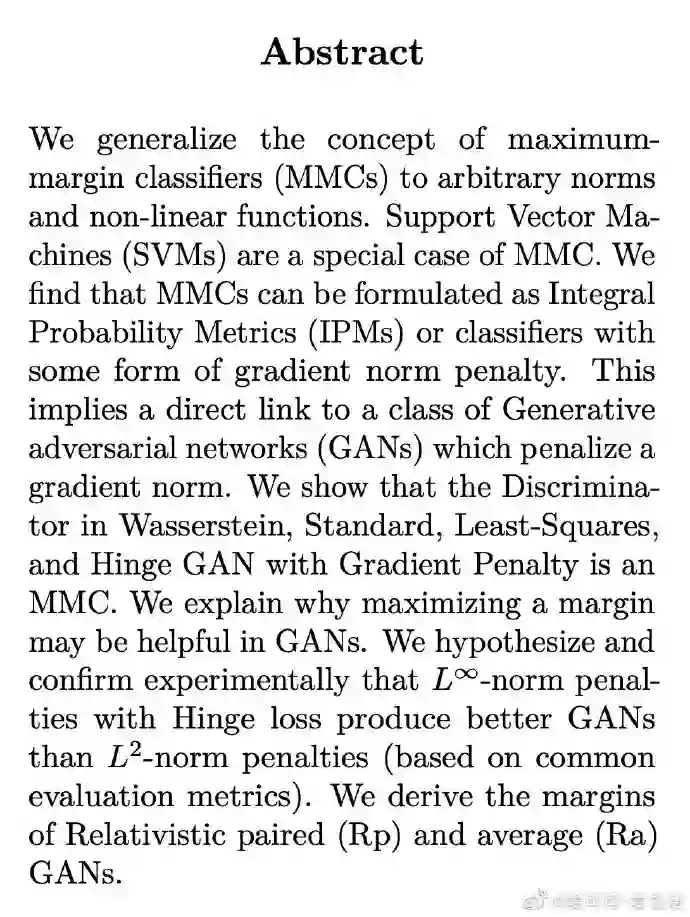 *《Connections between Support Vector Machines, Wasserstein distance and gradient-penalty GANs》A Jolicoeur-Martineau, I Mitliagkas [Mila] (2019)
