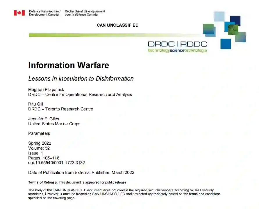 虚假信息对这些类型的组织构成了威胁,进而对国家构成了威胁。2019年,英国的数字文化、媒体和体育跨党派委员会将网上虚假信息的传播描述为对民主的生存威胁。这一挑战的严重性需要仔细分析。本文认为,教育是对抗虚假信息的最佳策略,确定了从成为虚假信息目标的国家中吸取的教训,回顾了虚假信息作为信息战战术的演变,审视了对手操纵网络的心理机制,评估了虚假信息对军队等机构构成的威胁,并思考了教育在预防目标群体并帮助每个人在日益数字化的世界中生存和发展的潜力。