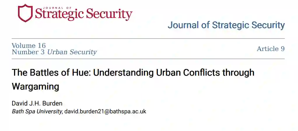 在考虑兵棋推演如何帮助我们更好地理解过去的战役和规划未来的城市冲突时,对顺化战役兵棋推演的回顾提出了四个值得考虑的问题。
