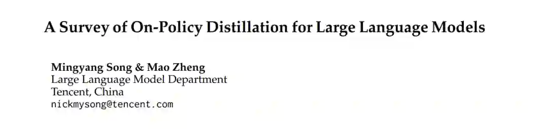 知识蒸馏已成为将前沿大语言模型(LLMs)的推理能力与领域专业知识迁移至小型可部署学生模型的主要机制。然而,目前的主流范式仍为离外策略(Off-policy):学生模型在教师生成的静态数据上进行训练,在学习过程中从未接触过自身生成的错误。这种训练与测试阶段的不匹配——即曝光偏差(Exposure Bias)的一个实例——导致推理时的预测错误随自回归过程不断累积。 同策略蒸馏(On-Policy Distillation, OPD)通过允许学生模型生成自身的轨迹(Trajectories),并针对这些自生成输出获取教师反馈,从而解决了这一问题。该方法将蒸馏过程植根于交互式模仿学习(Interactive Imitation Learning)理论。尽管在散度最小化、奖励引导学习及自我博弈(Self-play)等方向取得了快速增长,但 OPD 相关文献目前仍显零散,缺乏统一的论述。 本综述首次对面向 LLMs 的 OPD 技术进行了全面概述。我们引入了一个基于同策略样本的统一 $f$-散度框架,并从三个正交维度梳理了该领域的研究版图: 1. 反馈信号(基于 Logit、基于结果或基于自我博弈); 1. 教师访问权限(白盒、黑盒或无教师模式); 1. 损失粒度(词元级、序列级或混合级)。