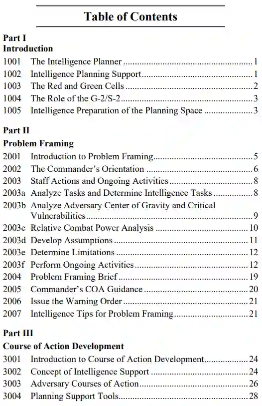 情报规划员是 AC/S G-2 行动规划组(OPT)的直接代表,负责领导与制定行动计划(OPLAN)、概念计划(CONPLAN)和行动命令(OPORD)有关的情报规划工作。因此,情报规划人员通过提供情报主题专业知识,确保向情报行动中心(IOC)或作战情报中心(CIC)传送 OPT 的情报信息请求(RFI)和 RFI 答复,为规划工作做出贡献。情报规划员每天向 OPT 简要介绍最新的 "作战空间情报准备"(IPB)产品,并确保将相关产品纳入美海军陆战队规划流程(MCPP)的每个步骤。