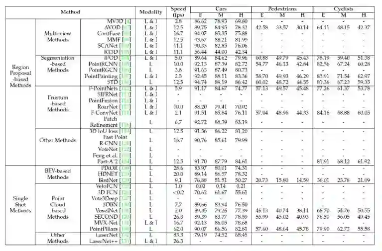 表3:在KITTI test BEV检测基准上三维目标检测结果对比。