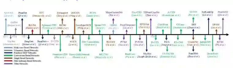 图8:按时间顺序概述了一些最相关的基于深度学习的点云语义分割方法。