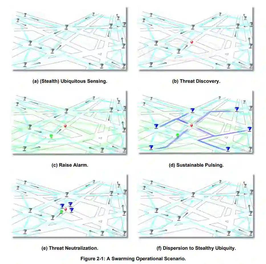 未来的北约联合部队将纳入自主和半自主的地面、空中和海上平台,以提高部队的实效性和敏捷性。这些自主系统将作为力量倍增器部署在从班级到旅级的所有战斗梯队中[1]。它们将帮助指挥官发展和保持对局势的了解,在更广泛的地区和人类操作人员无法进入的地区提供持久的监视和侦察[1]。蜂群机器人/传感器可以提供一个协作的、多机器人/传感器的系统,提供所需的集群行为,以实现系统能够覆盖这些更大的区域,共享信息,并提供单个系统无法实现的先进行为[2]。将平台数量从几台、几十台到几百台进行扩展并采用以蜂群为中心的行为能力将提高北约部队的能力:1)在战场上建立并保持优势;2)防止敌人做出有效的反应。北约部队与这些以蜂群为中心的系统的整合,将是实现和保持战术优势和作战效率的关键要求。共生的人类-蜂群团队[3]将使部队能够在不确定的场景和条件下有效地理解、适应、战斗和获胜。