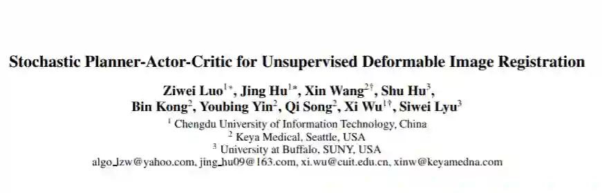 该论文创新性地提出了一种具有随机策略的计划者-执行者-评论家强化学习模型。该模型可有效解决强化学习模型因状态空间和动作空间过大而无法处理图像柔性配准问题的缺陷,是国际上首次提出使用强化学习完成图像柔性配准的工作。本文在多种医学图像配准数据集上对该方法进行评估,实验结果表明此方法超越了当前该领域的先进模型,具有优异的配准效果。