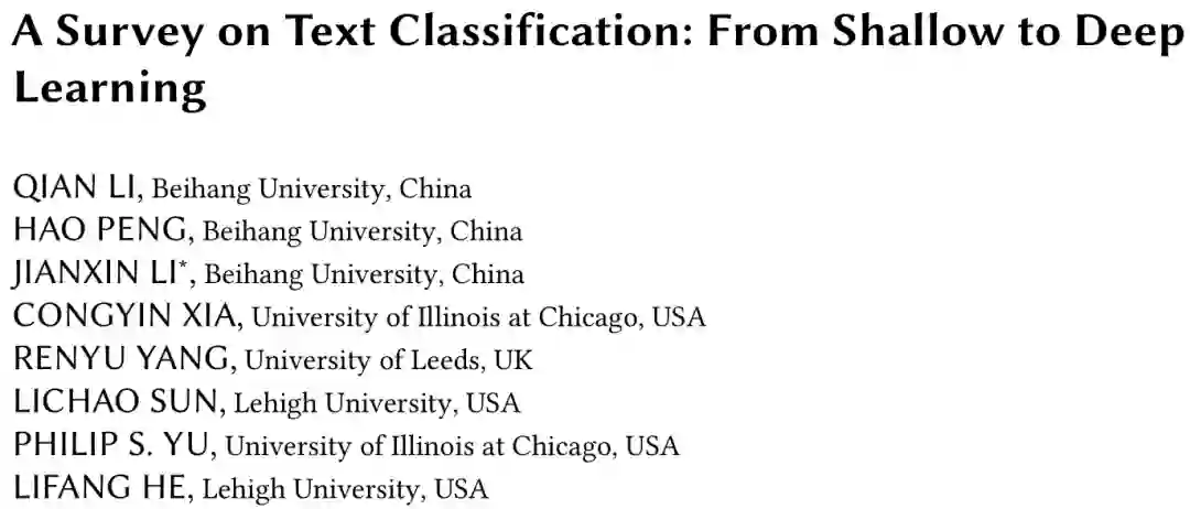 在文献中,Kowsari等[13]考虑了不同的文本特征提取、降维方法、文本分类的基本模型结构和评价方法。Minaee等人[14]回顾了最近基于深度学习的文本分类方法、基准数据集和评估指标。与现有的文本分类研究不同,我们利用近年来的研究成果对现有的模型进行了从浅到深的总结。浅层学习模型强调特征提取和分类器设计。一旦文本具有精心设计的特征,就可以通过训练分类器来快速收敛。在不需要领域知识的情况下,DNNs可以自动进行特征提取和学习。然后给出了单标签和多标签任务的数据集和评价指标,并从数据、模型和性能的角度总结了未来的研究挑战。此外,我们在4个表中总结了各种信息,包括经典浅层和深度学习模型的必要信息、DNNs的技术细节、主要数据集的主要信息,以及在不同应用下的最新方法的一般基准。总而言之,本研究的主要贡献如下: