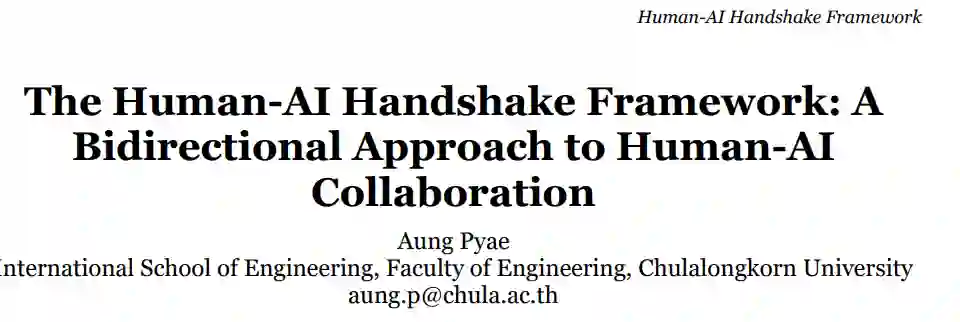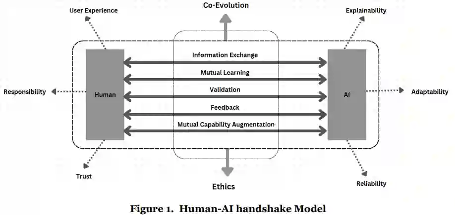 人与人工智能的合作正在从基于工具的视角演变为一种伙伴关系模式,在这种模式中,人工智能系统补充并增强了人类的能力。传统的方法往往将人工智能局限于辅助作用,而忽略了人类和人工智能为共同目标做出贡献的互惠关系的潜力。虽然以人为本的人工智能(HcAI)框架强调透明度、道德和用户体验,但它们往往缺乏真正的动态合作机制。人与人工智能握手模型 "通过引入一个双向、自适应的框架来弥补这一不足,该框架具有五个关键属性--信息交换、相互学习、验证、反馈和相互能力增强--可促进平衡的互动。这种模式使人工智能成为一个反应迅速的合作伙伴,随着时间的推移与用户共同发展。用户体验和信任等人类促进因素与可解释性和责任感等人工智能促进因素共同促进了这种合作,而道德和共同进化的共同价值观则确保了可持续发展。与现有框架不同,这种模式体现在支持双向学习和透明度的 GitHub Copilot 和 ChatGPT 等工具中。挑战依然存在,包括维护道德标准和确保有效的用户监督。未来的研究将探索这些挑战,旨在建立真正的人类-人工智能合作关系,利用双方的优势,取得超出任何一方单独完成的成果。
