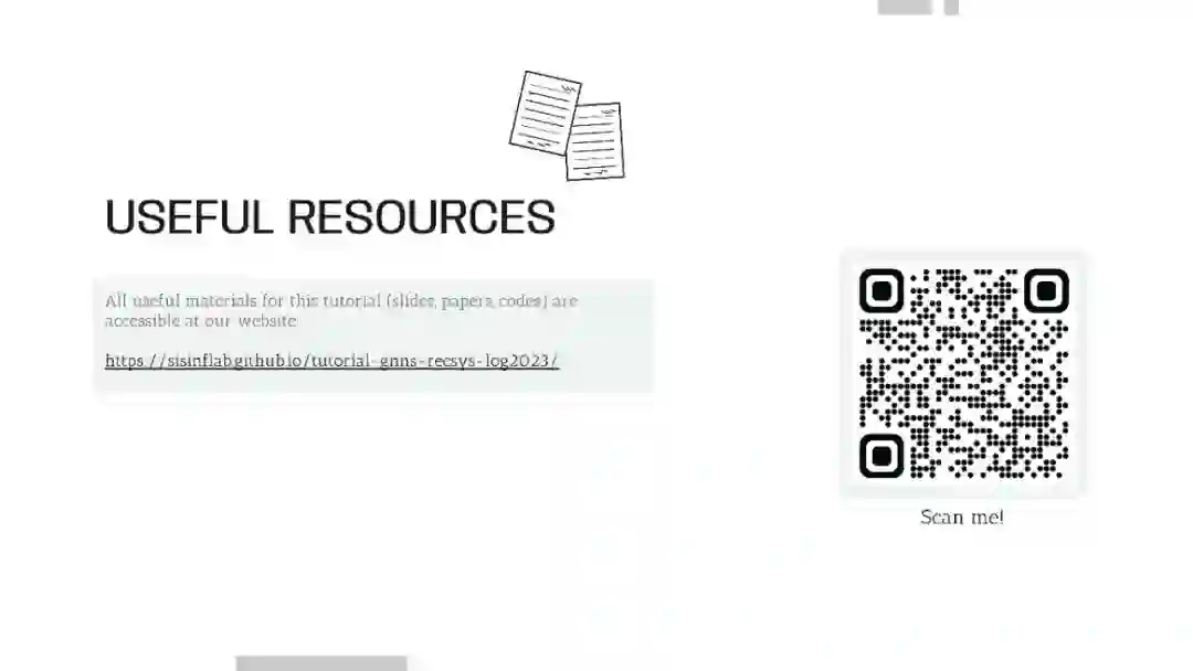 通过这个教程,参与者将获得对基于GNNs的推荐系统的全面了解,包括其理论基础、实现挑战和性能优化的策略。此外,通过两个动手实践环节,参与者将有机会亲身体验如何构建和评估这类系统,从而深入理解推荐系统中GNNs的应用和潜力。这个教程是对感兴趣于推荐系统和GNNs的研究者和实践者的宝贵资源。