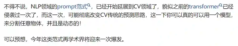 推特地址:https://twitter.com/DrJimFan/status/1643647849824161792 还有网友表示,NLP 领域的 Prompt 范式,已经开始延展到 CV 领域了,可以预想,今年这类范式在学术界将迎来一次爆发。