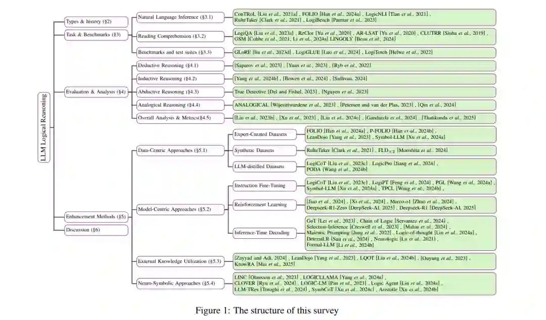 随着像 OpenAI O3 和 DeepSeek-R1 等先进推理模型的出现,大语言模型(LLMs)展现出了卓越的推理能力。然而,它们在执行严格逻辑推理方面的能力仍然是一个悬而未决的问题。本文综述了大语言模型中逻辑推理的最新进展,这是人工智能研究中的一个关键领域。文章概述了大语言模型中逻辑推理的范围、理论基础以及用于评估推理能力的基准测试。我们分析了不同推理范式下现有的能力——演绎推理、归纳推理、溯因推理和类比推理——并评估了提升推理性能的策略,包括以数据为中心的调优、强化学习、解码策略和神经符号方法。最后,本文展望了未来的研究方向,强调了进一步探索以增强人工智能系统逻辑推理能力的必要性。
