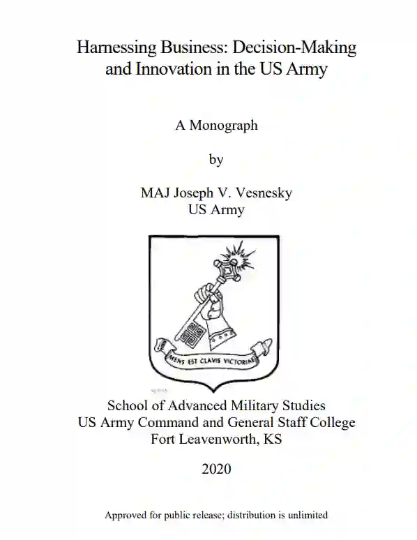 试图回答 "美国陆军能从企业创新和决策中学到什么 "这一问题的研究很少,尤其是在复杂性背景下。谷歌和 Garmin 等组织已经展示了成功适应这种动态复杂环境的能力。本研究试图从谷歌和 Garmin 那里获得与美军相关的真知灼见。具体来说,研究试图考察谷歌和 Garmin 内部是如何做出可能适用于军队的创新决策的。这项分析有助于了解复杂环境下的组织决策,指挥官和参谋人员可将其用于未来的组织决策模型中。
