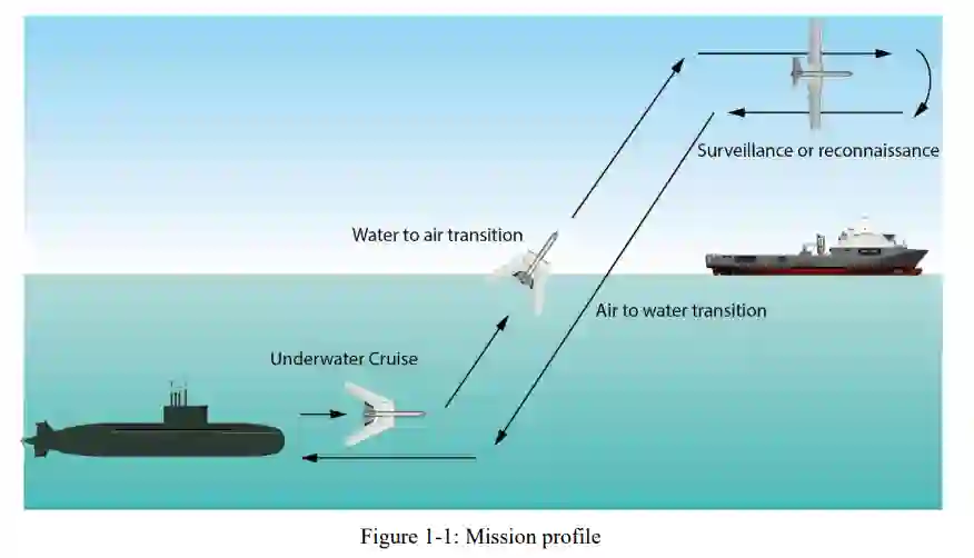 无需上浮即可执行水下及沿岸区域监测任务的能力将提升潜艇的安全性和作战能力。本文提出了一种创新型双模态无人水下/空中系统(BUUAS)及其作战概念(CONOPS),旨在降低潜艇暴露风险。该系统的运行流程为:首先由水下潜艇释放BUUAS,使其在水下航行以保持与潜艇的安全距离;随后通过创新型推进系统实现从水下到空中的介质跨越,执行既定空中任务;任务完成后,BUUAS将重新潜入水中并巡航返回母艇进行回收。