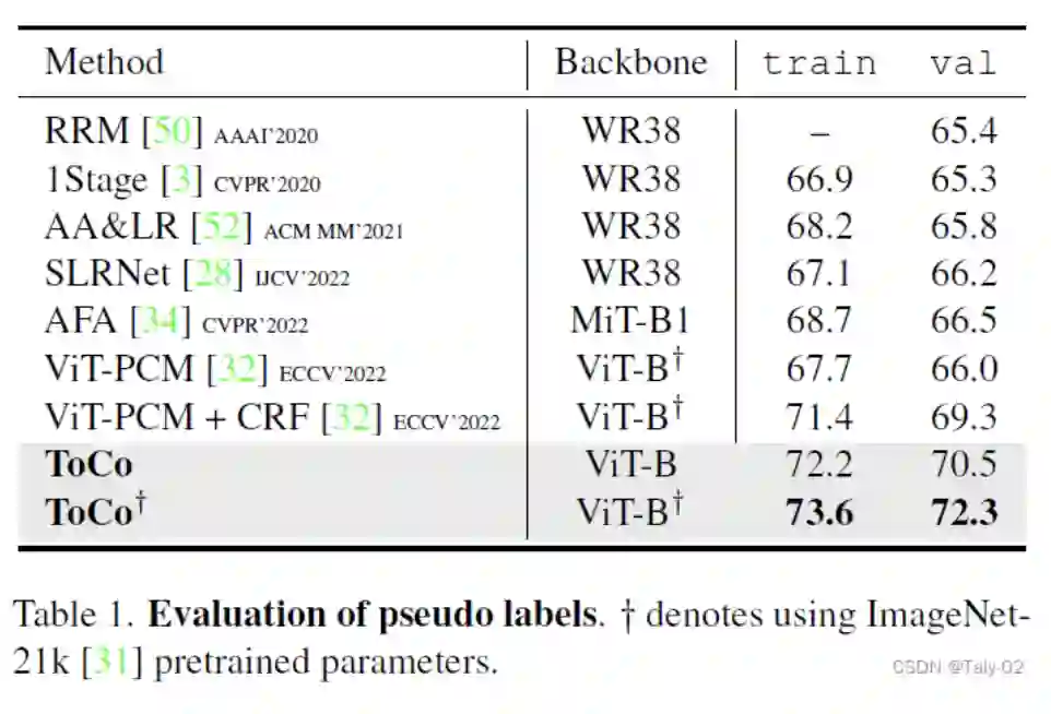 作者丨Garfield编辑丨极市平台 极市导读 在本文中,所提出的方法名为Token Contrast(ToCo),该方法用于提高使用图像级标签的弱监督语义分割的性能。ToCo 解决了ViT的over-smoothing问题,并进一步探索了它在 WSSS 中的潜力。