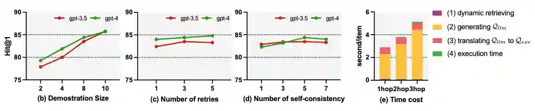 我们选用gpt-3.5-turbo-0613作为基础模型进行试验,并选择SentenceBERT作为检索器,在三种结构化数据问答任务:表格问答(WikiSQL,WTQ)、知识图谱问答(MetaQA,WebQSP),时序知识图谱问答(CronQuestion)中5个数据集上进行试验,实验结果如下: