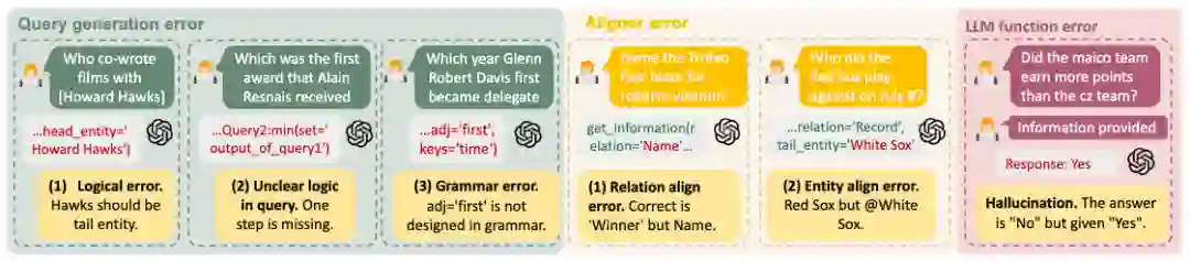 结构化数据问答(TableQA、KGQA、TKGQA 等)在学术界与工业界备受关注。结构化知识问答方法如NL2Query针对特定数据类型将问题转化为对应查询函数,这限制了实际场景中的通用性。随着LLM和RAG方法的发展,一些更加通用的方法被提出,但依然存在如下问题: