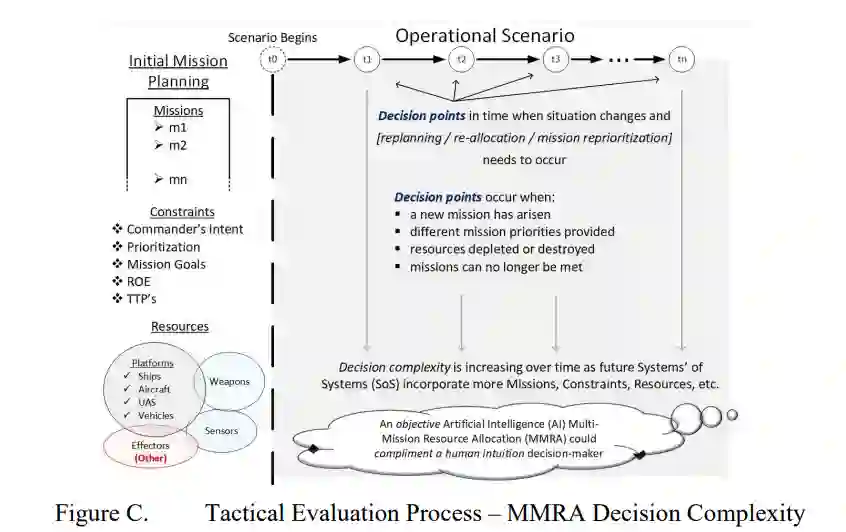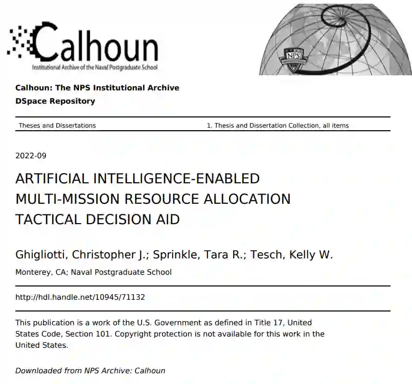 通过这项美海军的顶点研究,人工智能(AI)三人小组利用系统工程(SE)的方法来研究人工智能辅助的多任务资源分配(MMRA)如何使所有军种的任务规划者受益。这项研究的动力来自于优化我们武装部队中的MMRA问题集,对于战术领导人有效管理现有资源至关重要。存在着一个将人类决策者与人工智能支持的MMRA规划工具相结合的机会。在计算速度、数据存储和商业应用中的整体公众接受度方面的快速技术进步促进了这一点。