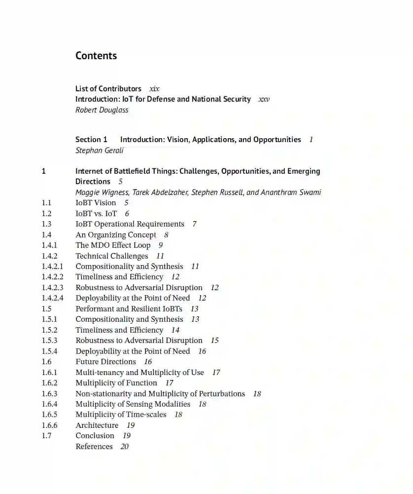 面向国防和国家安全的物联网 实践案例指南说明了在安全和敌对环境中采用物联网的挑战和解决方案 国防与国家安全物联网涵盖物联网安全、架构、机器人、传感、政策、运营等主题,包括美国国防部首屈一指的物联网研究项目“战斗物联网”的最新成果。本文还讨论了将国防工业操作转换为物联网的挑战,并总结了监管政府在自由社会中使用物联网的政策建议。 作为现代参考,本书涵盖了物联网中的多种技术,包括基于内容路由的可生存战术物联网、移动自组织网络和电子形成的波束。物联网架构的例子包括使用KepServerEX进行边缘连接,使用AWS IoT Core进行物联网数据,使用Amazon S3进行物联网数据。为了帮助读者理解,文本使用案例研究说明了在国防应用中使用机器人设备的挑战和解决方案,加上为国防工业基地使用物联网的案例研究。 由国防和国家安全物联网技术的领先研究人员和从业人员编写,国防和国家安全物联网还包括以下信息: 物联网武器、后勤和系统驱动的战争变化 物联网资源分配(监控现有资源并根据对抗行动对其重新分配) 战场物联网人工智能处理原理,包括机器学习和推理 战术物联网通信、网络、服务器和架构中的漏洞,以及保护它们的策略 适应快速扩展的商业物联网,为国防物联网提供动力 对于国防相关公司的应用工程师以及管理人员、政策制定者和学者来说,国防和国家安全物联网是一种独一无二的资源,它提供了一个重要而敏感的话题的广泛覆盖,而这个话题往往由于机密或受限的分发而对公众保密。 https://www.wiley.com/en-us/IoT+for+Defense+and+National+Security-p-9781119892205
