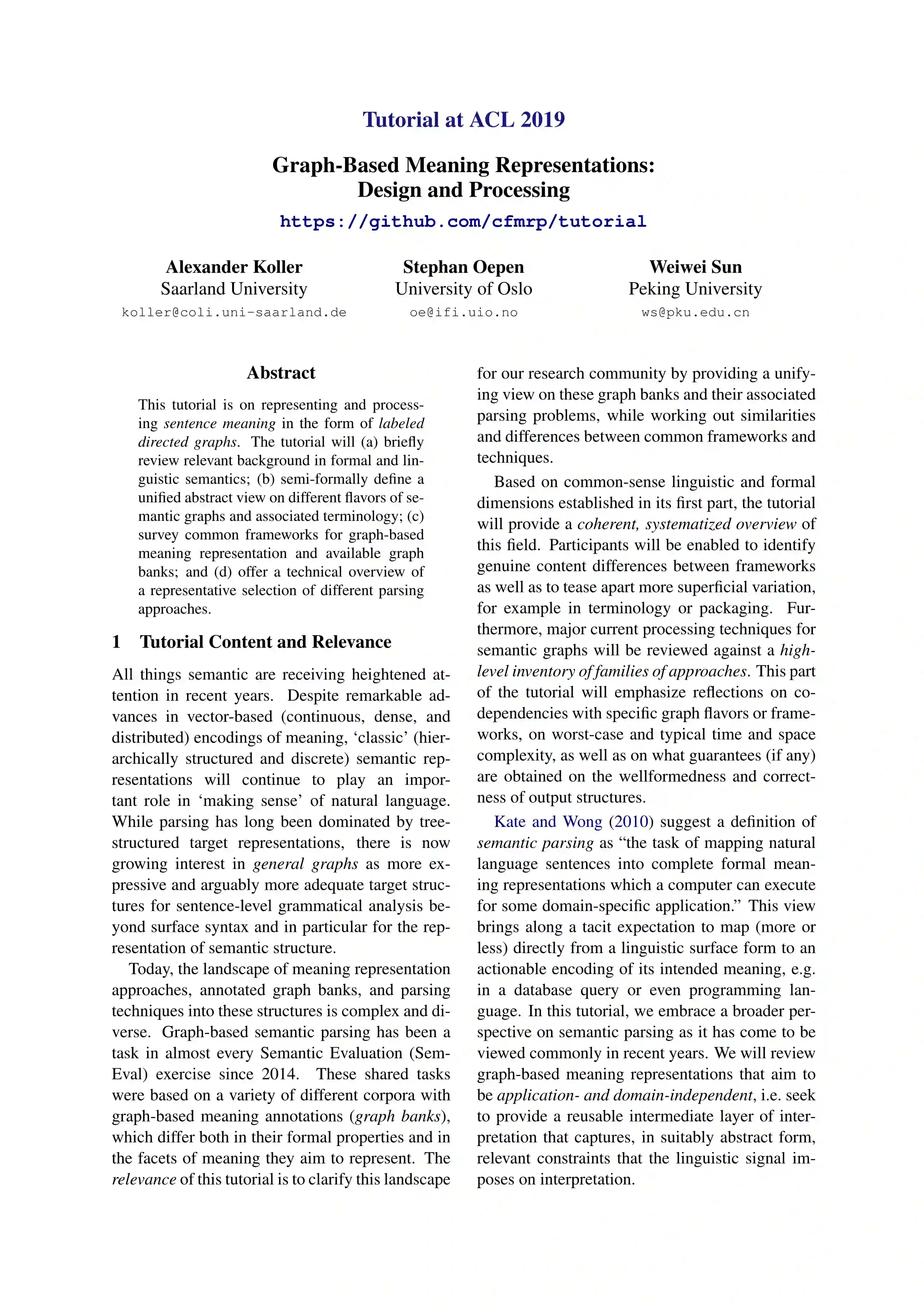 教程题目:Graph-Based Meaning Representations: Design and Processing