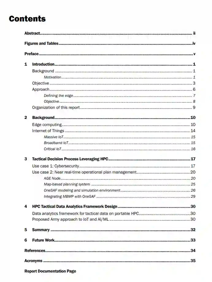 加速战术决策过程需要利用三个技术领域的能力:(1)高性能计算(HPC),(2)机器学习(ML),以及(3)物联网(IoT)。利用这些领域可以减少网络流量,缩短将数据转化为可操作信息所需的时间。更快的决策周期可能会彻底改变战场上的行动。