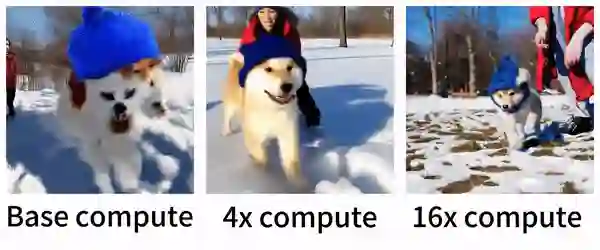 在这项工作中,OpenAI 发现扩散 Transformers 也可以有效地缩放为视频模型。下面,OpenAI 展示了训练过程中具有固定种子和输入的视频样本的比较。随着训练计算的增加,样本质量显着提高。