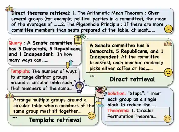 近年来,大语言模型在数学推理任务中取得了显著进展,尤其是在小学和初中级别的数学问题上表现突出。然而,在面对更为复杂、结构隐晦的高中及以上数学问题时,模型的推理能力仍显不足。相较于人类能够快速从记忆中检索相似问题的解决经验并调用相关定理,现有LLM在识别问题结构、关联正确定理方面存在明显短板。