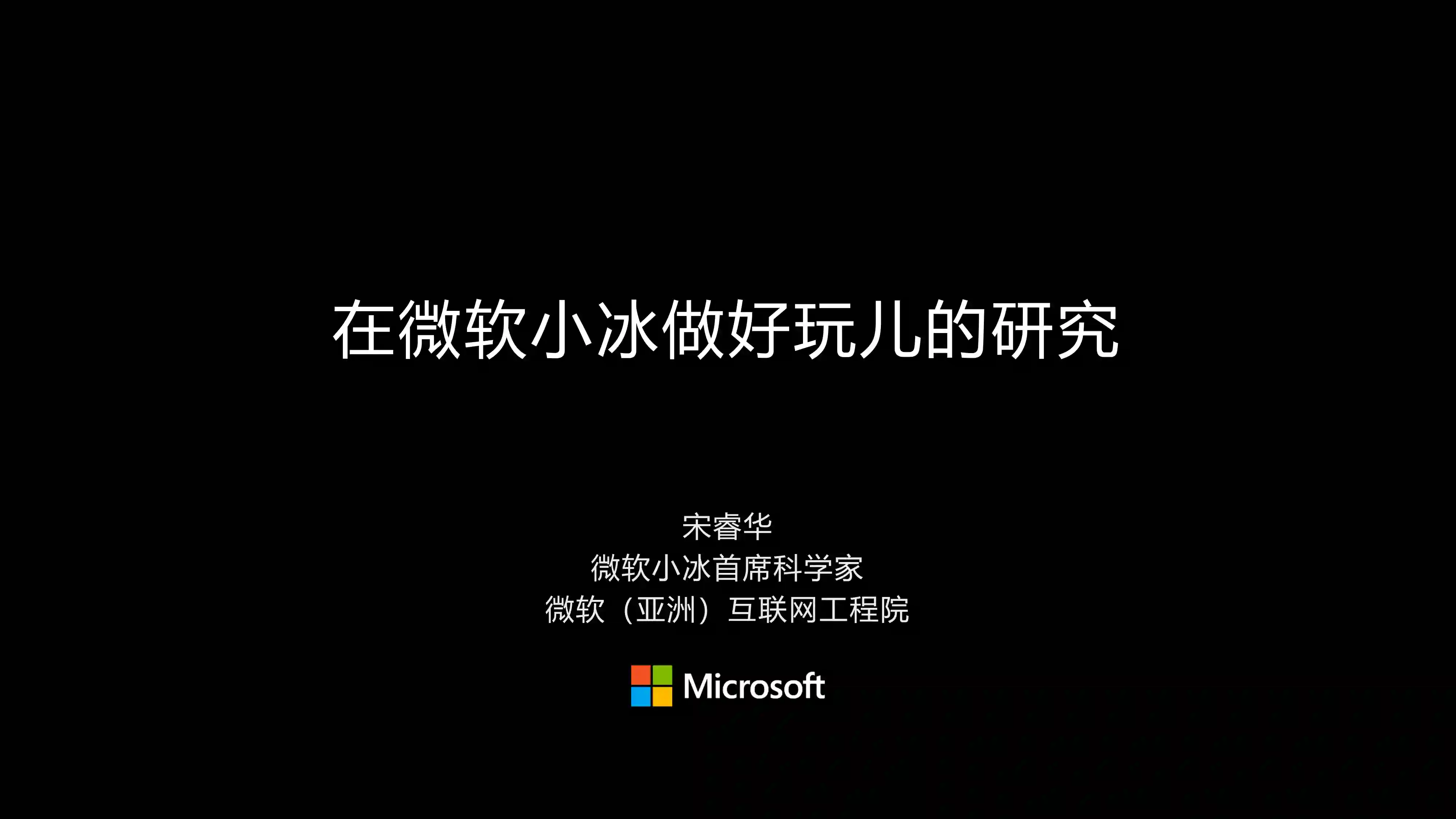 报告人: 宋睿华 微软小冰首席科学家 微软(亚洲)互联网工程院