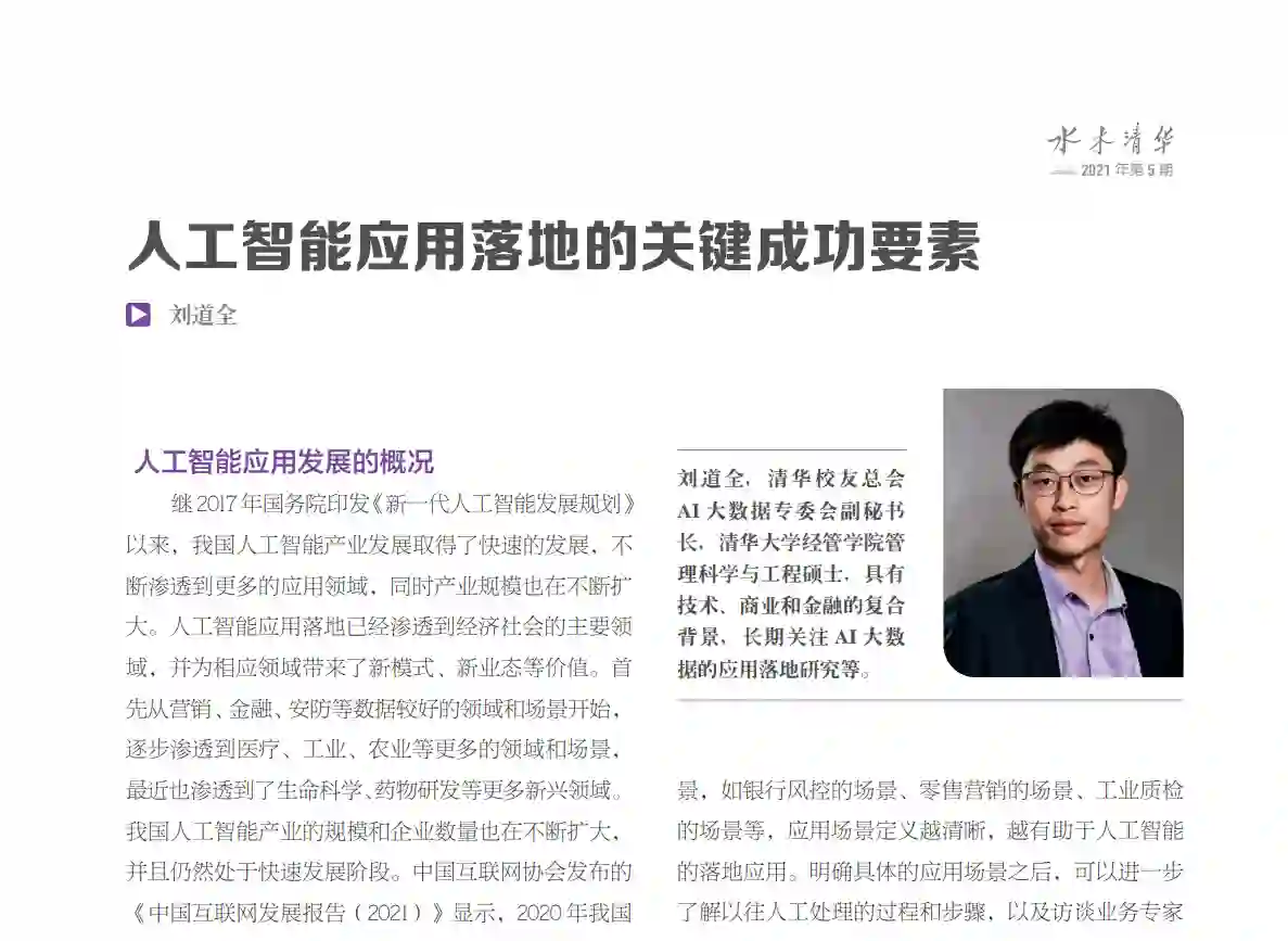 人工智能产业的发展离不开人工智能应用的落地,只有人工智能应用落地的领域和场景越来越多,人工智能技术的价值才能得到体现,人工智能产业才能茁壮发展。推动和促进人工智能应用落地,每个人工智能应用落地项目都应具体分析,明确是应用、模型、数据、算法和算力五大要素中哪个或哪几个关键要素决定了项目的成败,并有针对性地解决关键要素中遇到的问题,保障人工智能应用的落地。分析人工智能应用落地的五大要素,不仅可以把握具体人工智能应用落地的成败,而且可以进一步掌握人工智能发展的核心机会。