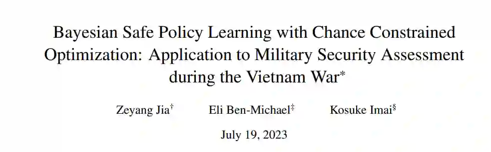 本文的其余部分安排如下。第 2 节介绍了美国在越南战争中的军事安全评估、HES 以及相关的经验政策学习问题。第 3 节介绍了正式设置,第 4 节介绍了贝叶斯安全政策学习框架和机会约束优化程序,以及通过高斯过程和贝叶斯因果森林实现。第 5 节介绍了评估我们建议的数值实验。第 6 节将贝叶斯安全策略学习方法应用于军事安全评估问题。第 7 节总结并讨论了局限性和未来方向。