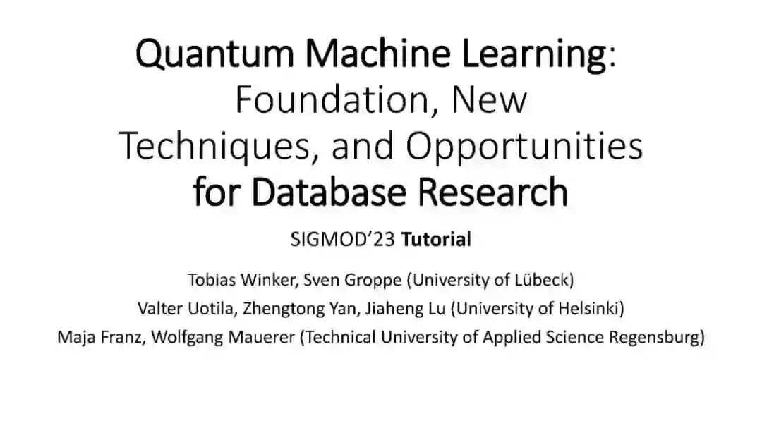 近年来,量子计算领域取得了显著的进展。量子计算机的原型已经存在,并已通过云服务提供给用户(例如,IBM Q experience、谷歌量子AI或Xanadu量子云)。虽然容错和大规模量子计算机还没有出现(如果有的话,可能在很长一段时间内不会出现),但这项新技术的潜力是不可否认的。量子算法被证明要么在某些任务上优于经典算法,要么在合理的复杂度理论假设下无法被经典方法有效模拟。据推测,即使是不完美的现代技术也会比经典系统显示出计算优势。最近的研究是使用量子计算机来解决机器学习任务。与此同时,数据库社区已经成功地将各种机器学习算法应用于数据管理任务,因此将这两个领域结合起来似乎是一项有前途的努力。然而,量子机器学习对于大多数数据库研究者来说还是一个新的研究领域。在本教程中,我们提供了量子计算和量子机器学习的基本介绍,并展示了数据库研究的潜在好处和应用。展示了如何将量子机器学习应用于数据库中的连接顺序优化问题。