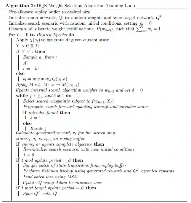 鉴于此环境的高度维数特性,以及平衡探索与搜索战术开发的复杂性(需使用多个智能体发现并歼灭数量未知的入侵者),本研究独特地采用了基于强化学习的方法。通过大量随机选取的场景验证了所得算法,以评估其泛化“发现-歼灭”策略(亦称战术)的能力。测试在更广阔区域进行,涉及不同数量的智能体和不同的速度比,同时也考虑了诸如集群核心目标或分群行动等独特行为。其他知名方法(例如网格搜索等)被用作量化比较的基础,以评估所开发算法的性能。结果证明了基于强化学习的算法在发现和歼灭入侵者方面,相较于其他常用算法的有效性。