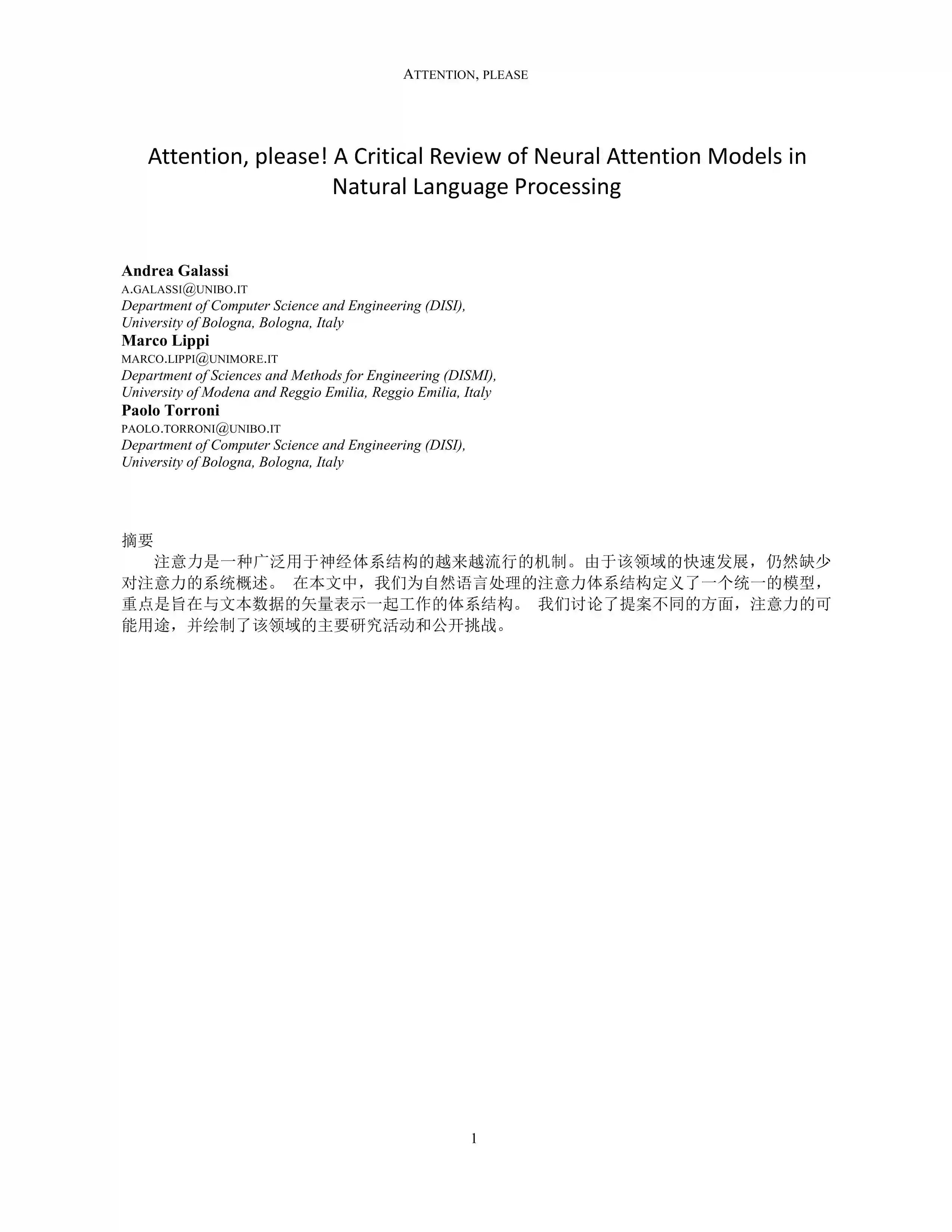 NLP注意力机制综述论文翻译,Attention, please! A Critical Review of Neural Attention Models in Natural Language Processing