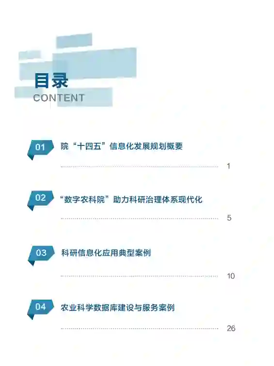 近年来,在习近平总书记关于网络强国重要思想理论指引下,我国网信事业取得历史性成就。2021 年是实施“十四五”规划和全面开启建设社会主义现代化强国新征程的开局之年,也是我院科学谋划网信事业发展新蓝图的关键一年。在中国农业科学院信息化工作领导小组的统筹指导下,全院信息化工作贯彻国家网信战略部署,落实党中央、国务院信息化方针政策,取得一系列明显进展与成效,有力支撑了全院科研创新发展。