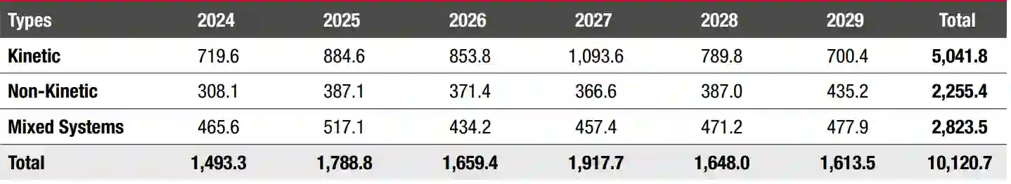 图:美国国防部:2024-2029 年C-UAS市场,百万美元