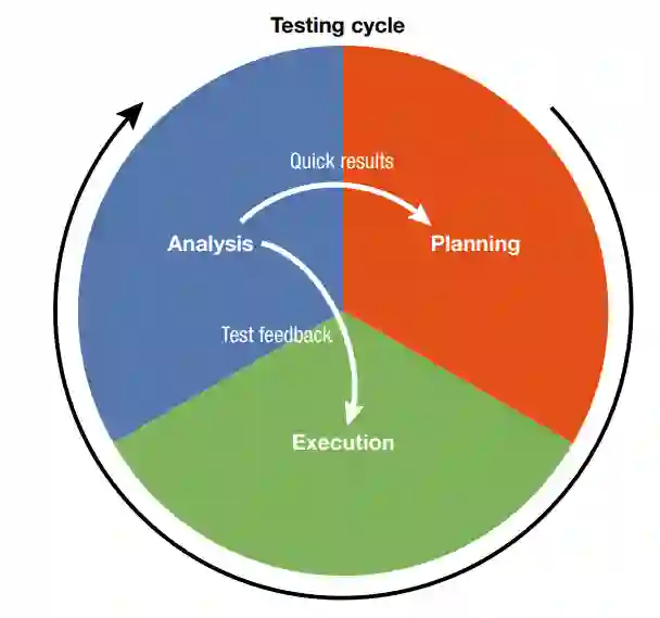 图1. 测试生命周期的概述。测试计划首先发生,接着是执行,然后是分析。分析为未来的测试计划和执行提供信息,使循环反复进行。
