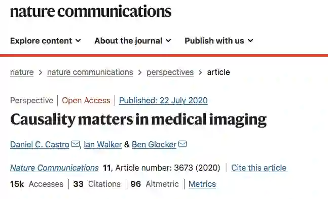 论文题目: Causality matters in medical imaging 论文链接: https://www.nature.com/articles/s41467-020-17478-w