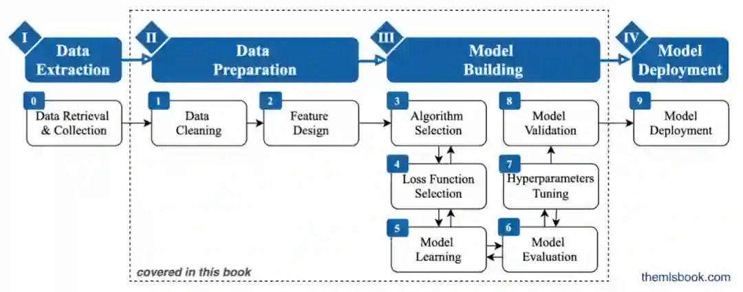 本书详细介绍了数据准备和模型构建模块——图1.2的步骤II和步骤III。这本书也分为两部分。在第一部分,你将学习机器学习的基础知识,在第二部分,你将学习更复杂的机器学习算法的细节。我把这本书分成这两个部分是出于一个非常重要的原因。很多时候,人们听到某些强大的机器学习算法的名字,如支持向量机、神经网络或增强决策树,并对它们着迷。他们急于学习复杂的算法。你可以想象,如果他们不先学习简单的模型,就很难学习复杂的模型。但是,您可能还没有意识到,大多数ML模型都会遇到一些常见的问题和困难(比如过拟合),这些您将在下一章中了解。因此,虽然可能很想马上深入研究特定的算法,但你应该花时间来获得ML世界的高层图片以及它所建立的基本原则的所有细节(例如,从数学的角度来看,算法实际上是如何从数据中学习的)。这有点像用封面上的图片做拼图;当然,你可以在没有图像的情况下完成拼图,但这会花费更长的时间,而且你可能会犯很多错误。一旦你掌握了ML的基本原理,你将对这些常见问题有一个清晰的想法,你将能够理解如何避免常见的陷阱,无论你使用哪种学习算法用于特定的问题。