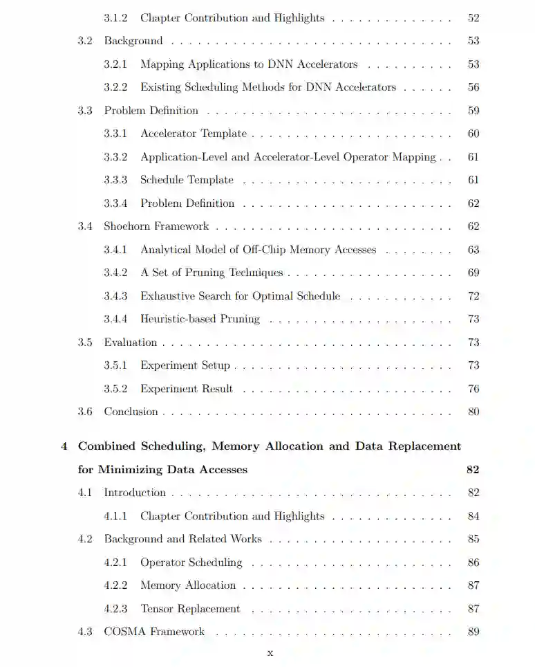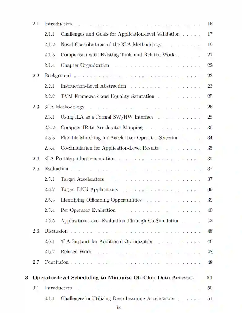首先,我们引入了“3LA”——一个端到端的编译器流水线,用于在未经修改的DNN应用上进行硬件加速器原型的应用级测试。基于最近提出的名为指令级抽象(Instruction-Level Abstraction,ILA)的形式化硬件规范,3LA实现了自动化的应用级模拟,从而显著减少了手动工程工作量,并提供了关键的开发反馈。 其次,我们提出了 Shoehorn,一种针对将DNN算子映射到硬件加速器的优化调度器,它协同优化循环分块、循环排序以及片上存储分区决策。此调度器为单个应用级算子生成针对特定加速器的最优映射计划,最大限度地减少片外存储访问。 最后,本论文介绍了 COSMA,一个优化框架,旨在部署整个或部分DNN应用至目标加速器时,最小化总片外数据访问量。COSMA通过集成优化算子调度、存储分配和张量替换策略,提供了一种全面的数据移动最小化解决方案。 这些贡献有望显著简化从早期设计到最终应用部署的DNN加速器开发过程,提升该领域的效率和效果。