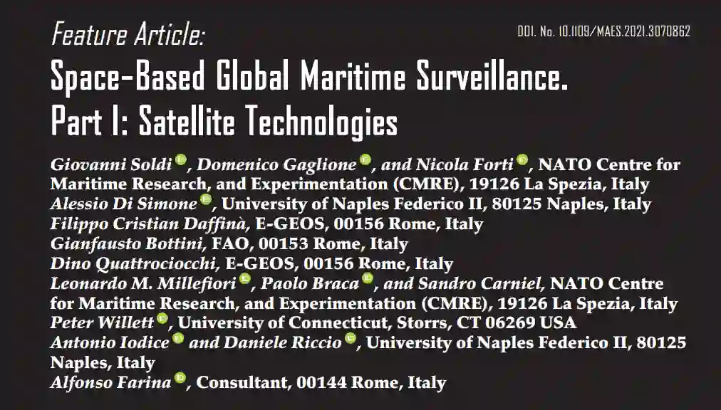 MSA 的一个关键组成部分是海上监视 (MS),它对搜救行动、渔业监测、污染控制、执法、移民监测和国家安全政策等至关重要。最近在 MS 领域取得的技术进步可以实时提供沿海地区和海洋的无缝广域业务图像。事实上,现在有多种异构传感器和信息源可用于 MS,它们都有各自的优势和局限性。自动识别系统(AIS)是与商船交通有关的一个主要信息来源,其目的是利用地面站网络识别和跟踪总吨位(GT)为 300 或以上的船舶以及所有客船(无论其大小)。然而,由于并非所有船舶都共享其位置和运动信息,因此仅靠 AIS 并不适合提供无缝 MS。此外,在偏远海域,通过地面或附近船只进行 AIS 数据中继几乎是不可能的。作为对自动识别系统的补充,沿海岸线安装的地面雷达是另一个重要的信息来源。然而,它们的覆盖范围受到视线传播的限制[2],而且由于辐射功率大,它们的普遍使用可能会引起环境问题。