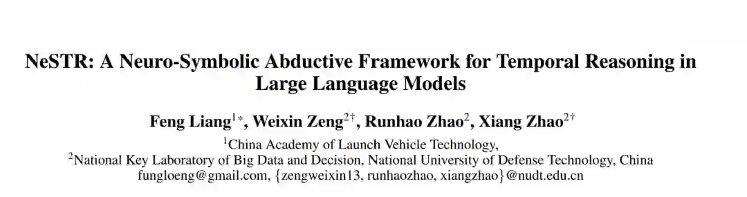 为克服这些局限性,我们提出 Neuro-Symbolic Temporal Reasoning (NeSTR),一种将结构化符号表示与混合式反思推理相结合的新型框架,用于增强 LLM 推理过程中的时间敏感性。NeSTR 通过符号编码保留显式的时间关系,通过验证机制强化逻辑一致性,并通过溯因式反思(abductive reflection)纠正有缺陷的推理。我们在多个时间类问答基准上的大量实验表明,NeSTR 在零样本设置下取得了更优性能,并在无需任何微调的情况下持续提升时间推理质量,展示了神经-符号融合在增强大型语言模型时间理解能力方面的显著优势。