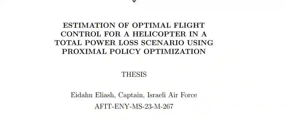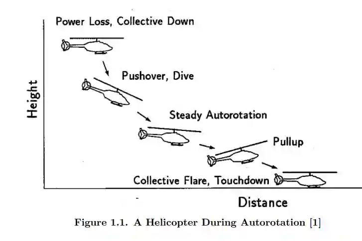 在美空军之前开展的工作中,成功实施了 GPOPS-II(一种伪谱最优控制求解器),用于在完全功率损失情况下寻找直升机的最优控制和最优轨迹。GPOPS-II 被认为是生成飞行前数据(如 HV 图,又称 “死亡曲线”)的有用工具,尽管由于程序的功能,解决方案仅以时间历史形式提供,无法生成明确的控制法则(如 u=f(x,t))。此外,GPOPS-II 不适用于实时应急,因为计算时间大约为几分钟。理想情况下,在实时紧急情况下的应用包括将算法解决方案映射到驾驶舱内的可视化辅助设备上,可能会显示在 HUD 或 MFD 上。由于上述局限性,最近开展了一项研究,利用深度强化学习算法为这种情况下的直升机生成最佳控制法则,如果证明成功,最终将允许设计各种驾驶舱驾驶辅助工具。据预测,此类驾驶辅助系统可减少在执行紧急无动力着陆时飞行员的工作量,并从总体上提高在此类事件中安全着陆的概率。提出的课题讨论了如何使用近端策略优化(PPO)算法,为直升机在完全失去动力紧急着陆的情况下找到最佳控制策略。任务包括使用 PPO 算法设计和训练一个行动者神经网络和一个批判者神经网络,同时开发直升机的动态运动方程,定义奖励结构并调整相关的超参数。事实证明,PPO 算法总体上是可行的,它可以在各种初始飞行条件下,使简单建模的直升机安全着陆。