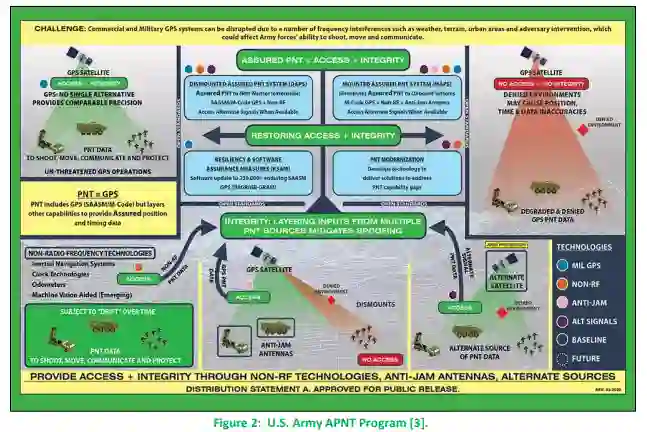 由于定位、导航与授时对国防部所有作战部分(机动、敌我识别和瞄准)的重要性,以及国防部面临来自不同威胁行为者对可靠使用全球定位系统的日益增长的威胁,国防部的所有部门都在制定计划和进行研究,以满足不同环境下对确保定位、导航与授时的需求。