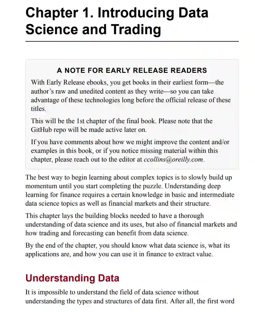 深度学习正在金融和交易世界中迅速获得动力。但对于许多专业交易者来说,这个高度复杂的领域有着复杂和困难的名声。这本实践指南教你如何使用Python从零开始开发一个深度学习交易模型,它还帮助你创建、交易和回测基于机器学习和强化学习的交易算法。