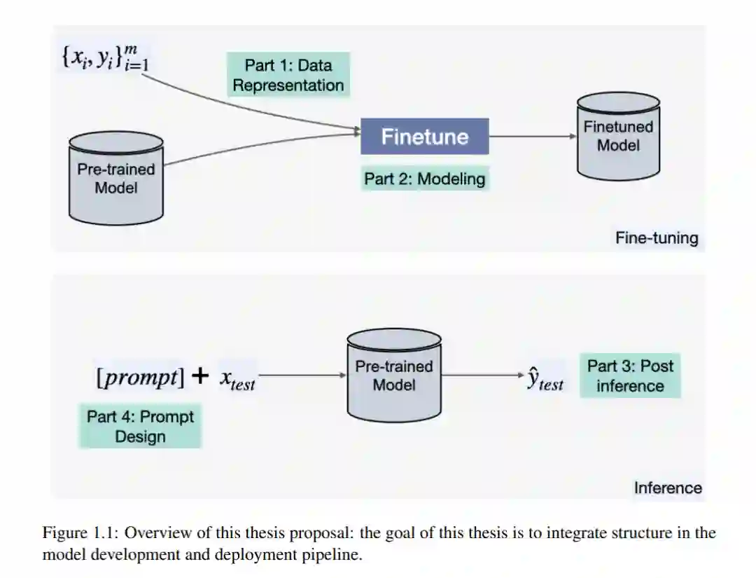 结构是一个在AI领域中具有多重解释的模糊术语 [Newell et al., 1972, Russell, 2010]。在本文中,我们采用广义的结构视角,不仅包括其在组织训练数据中的使用 [Bengio et al., 2013, Schmidhuber, 2015],还包括其在整个模型开发和部署生命周期中的作用,从增强训练和推理结果 [Vaswani et al., 2017, Devlin et al., 2019, Lake et al., 2017],到提高最终结果有效性的推理后调整 [Nye et al., 2021b, Dohan et al., 2022]。
