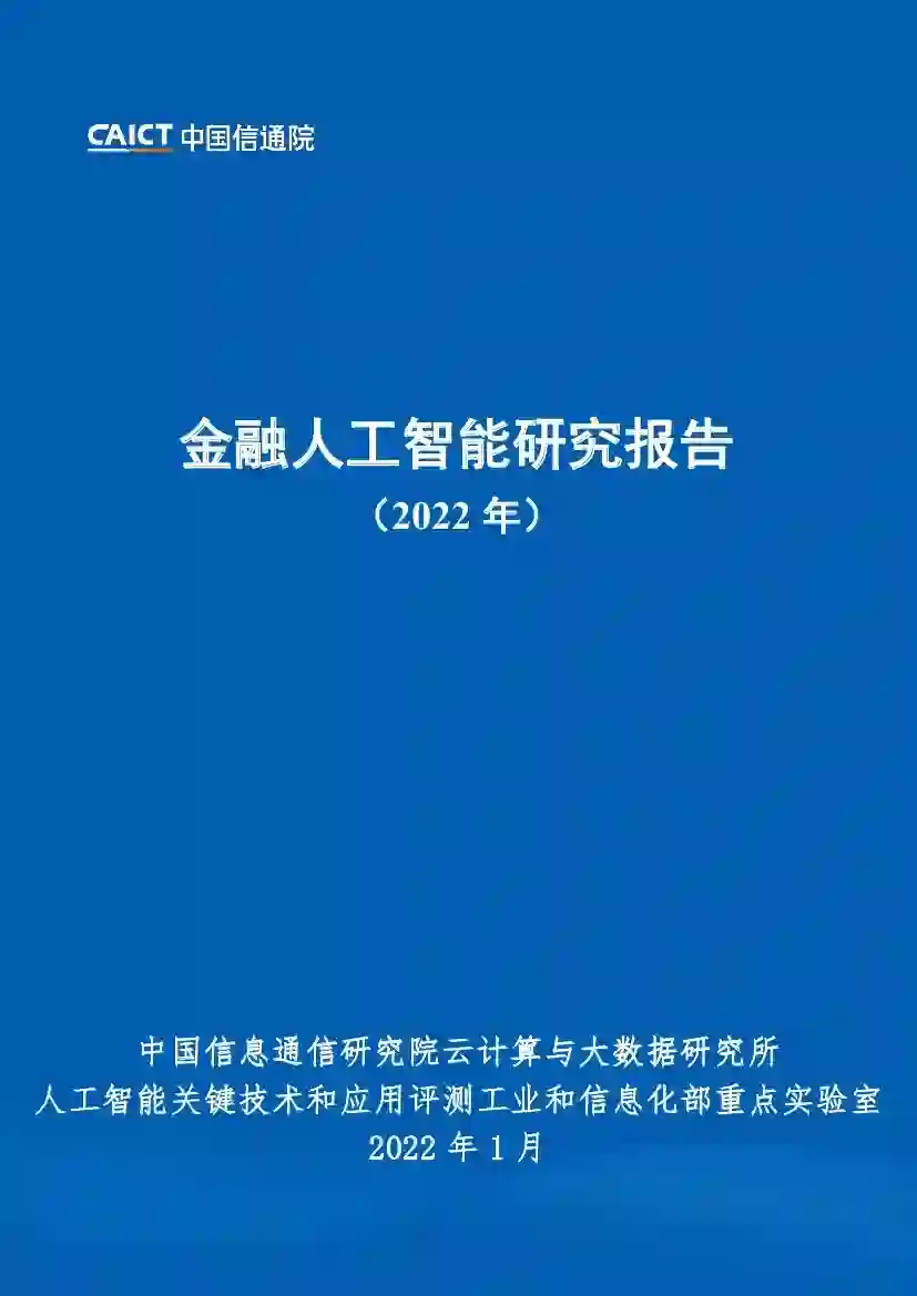 2022年1月14日,中国信息通信研究院(以下简称“中国信通院”)召开“可信AI成果发布会”。会上发布了《金融人工智能研究报告(2022年)》。