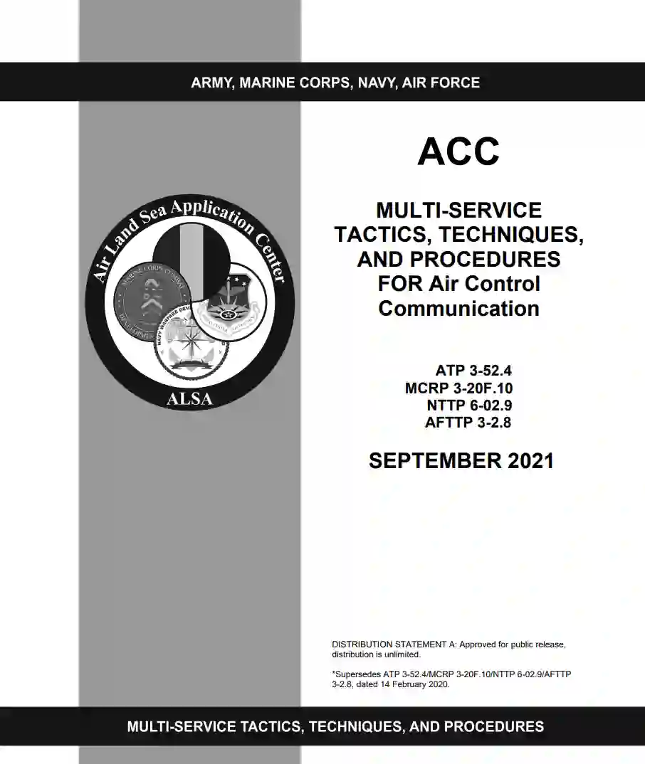 这份多军种战术、技术和程序(MTTP)出版物规定了战术指挥与控制(TAC C2)的通信战术、技术和程序(TTP),以管理空中行动并控制空域和飞机。它还规定了部队包装和直接空中支援协调、空对空(A/A)通信、A/A 拦截、威胁 A/A 警告、威胁地对空警告和空对地通信的 TTP。