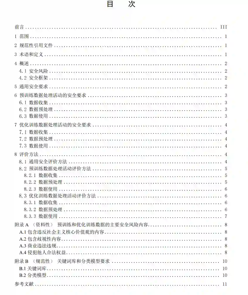 本标准规定了生成式人工智能在预训练和优化训练过程中,对所使用数据的通用安全要求、数据处理方面的安全要求,以及评价方法,适用于面向我国境内公众提供生成式人工智能服务的组织或个人提高预训练及优化训练数据获取与准备的安全水平,可也为生成式人工智能的数据提供者提供参考。
