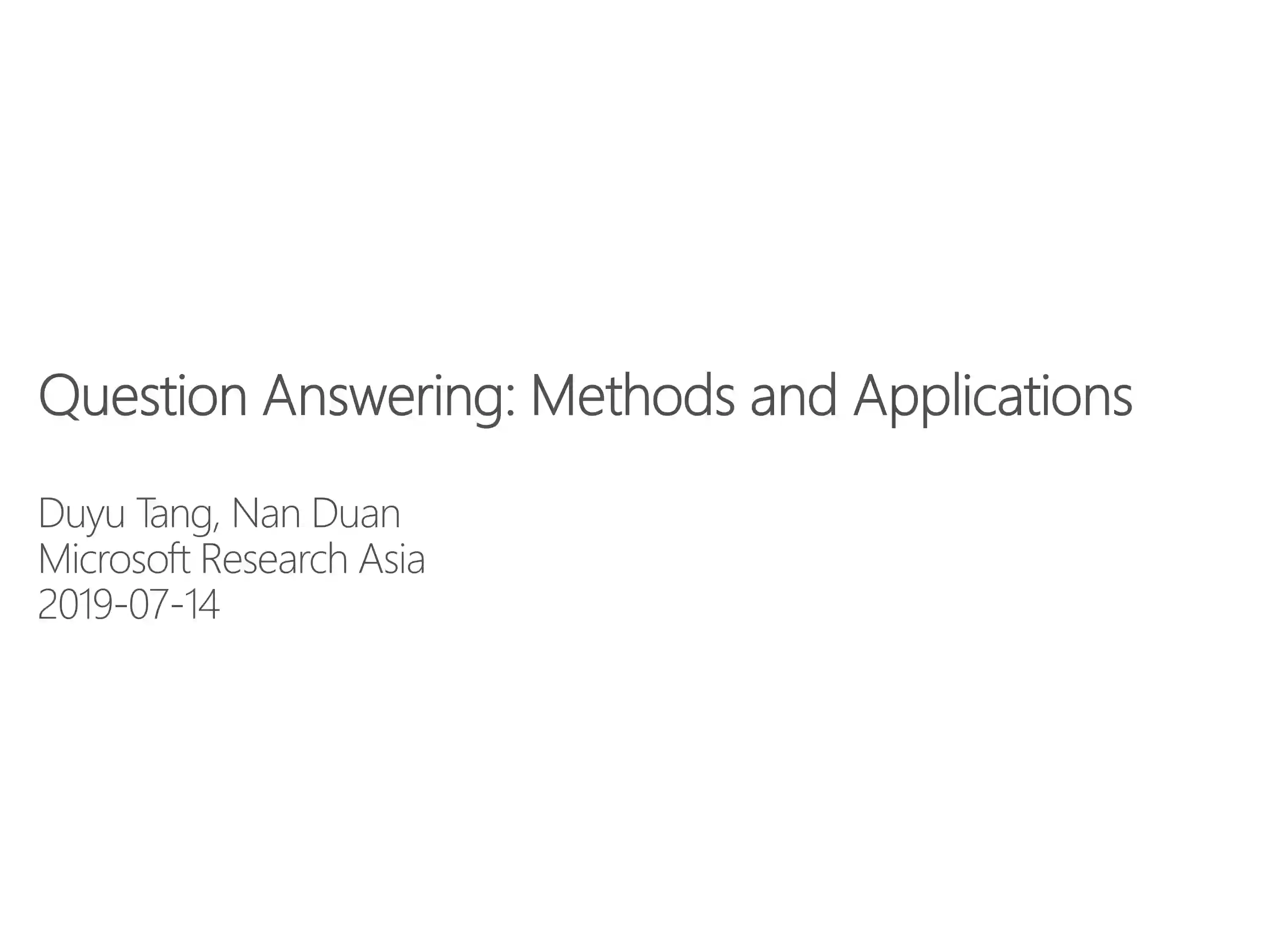 邀请嘉宾: 唐都钰,博士,微软亚洲研究院自然语言计算组研究员。从事自动问答、语义理解等自然语言处理研究,多项研究成果已经转化到微软必应搜索中。