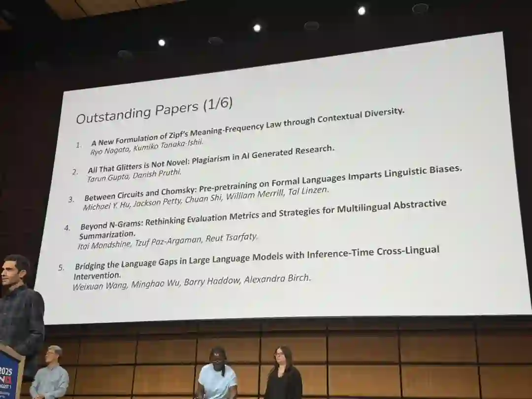 ACL 2025 颁发了两篇 TACL 最佳论文,分别如下: