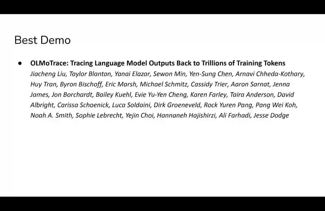 获奖论文:OLMoTrace: Tracing Language Model Outputs Back to Trillions of Training Tokens