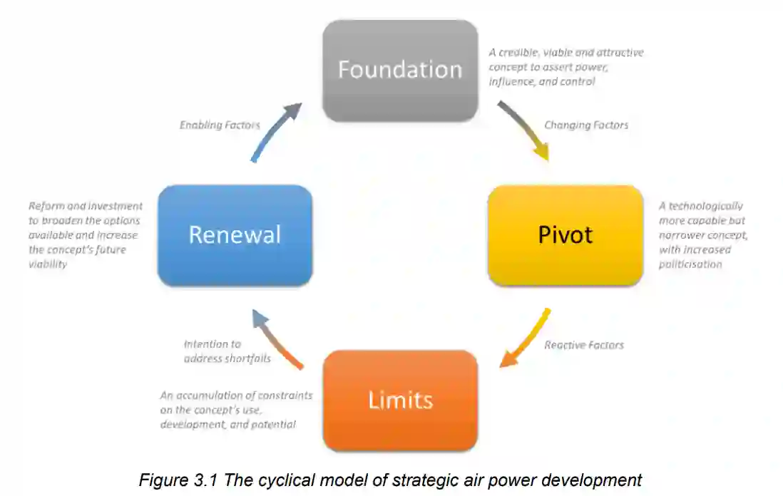 研究最后分三部分介绍了研究结果。首先,通过案例研究国家的经验说明了战略空中力量的演变。这包括作战实践、概念与国家空中力量理论之间的关系,以及组织动态的作用--军官、竞争和融合。其次,战略制空权的发展是一个反复的过程,案例研究国家通过这个过程理解、检验和评估了这一概念。在研究期间,对发展过程的出现、影响和作用进行了讨论和追踪。第三,从所有案例研究国家的经验中找出共同因素,并创建一个概念模型,从而说明战略空中力量的发展方向。该模型说明了冷战后战略空中力量发展方向的原因,并为提出历史周期性发展的最终理论奠定了基础。